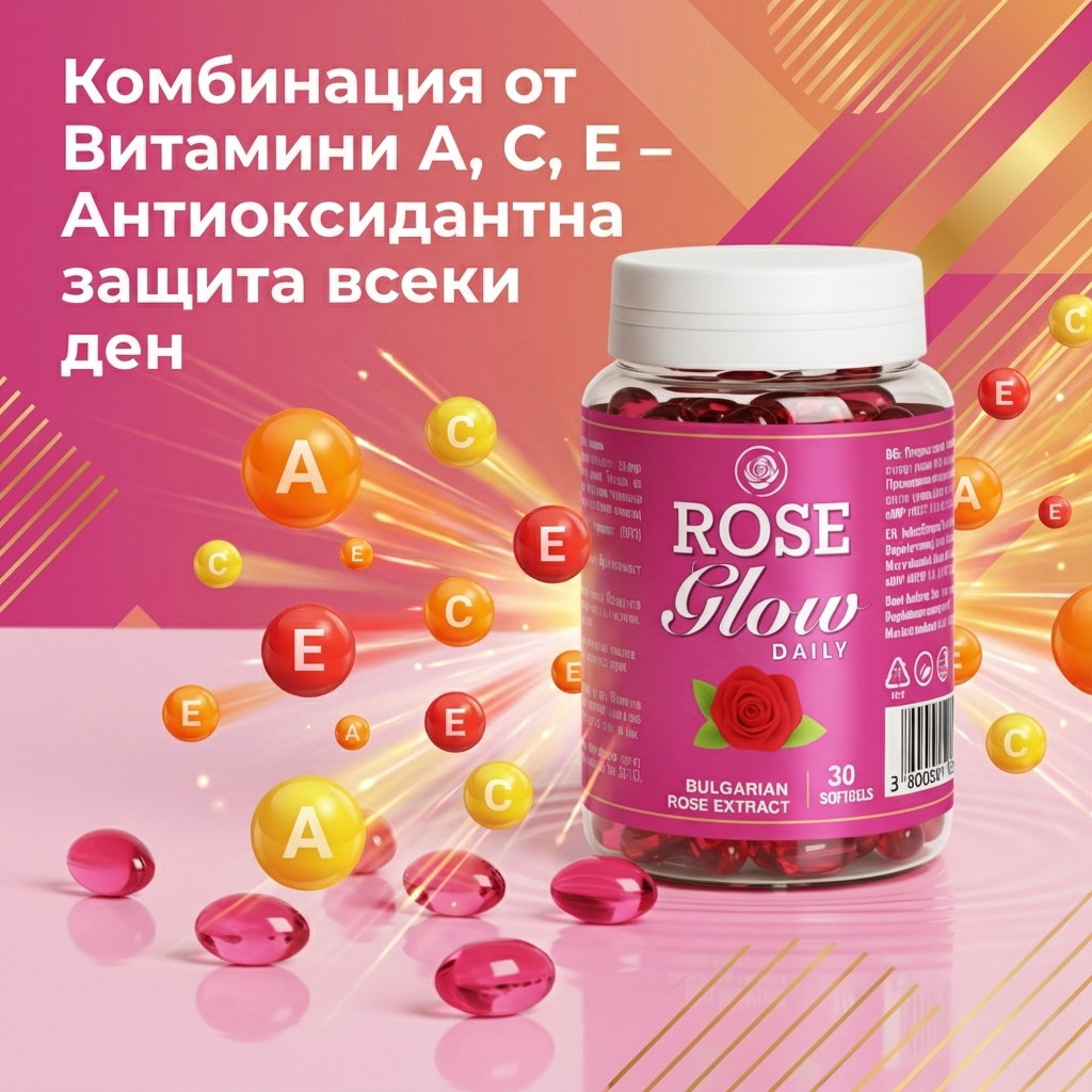 С Rose Glow получавате целия този мощен комплекс от 8 витамина и Омега киселини, обогатен с Масло от Българска Роза, в един продукт и на цена, която е многократно по-изгодна!